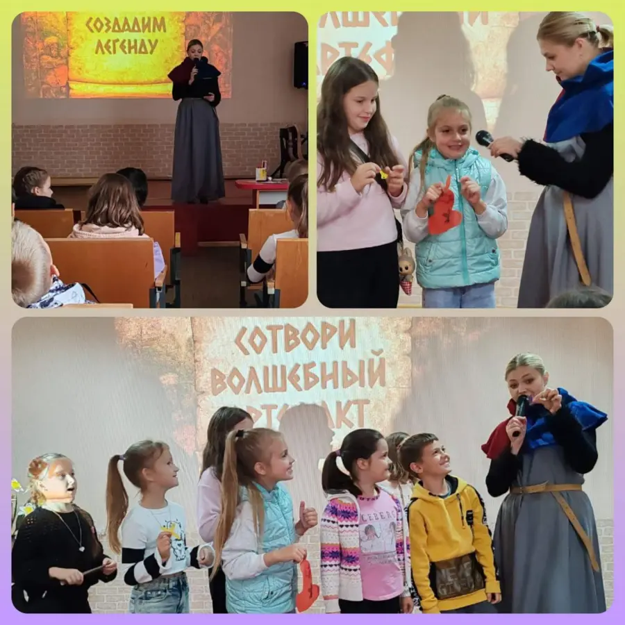 Программа началась с появления Хранительницы легенд, которая пригласила ребят в увлекательное путешествие по станциям квест-игры. На станции «Тайны замковых стен» школьники разгадывали загадки о средневековых крепостях, башнях и воротах. На «Письме из прошлого» им предстояло расшифровать послание духа замка, используя простую замену символов. Особенно ярким стало творческое задание «Создай героя легенды»: участники придумывали и рисовали своих персонажей – от храбрых трубадуров до мудрых травниц, наделяя их именами, дарами и добрыми сердцами. Затем на станции «Сотвори волшебный артефакт» ребята своими руками изготовили символические предметы – «Ключ Времен», «Зеркало Правды» и «Колокольчик Согласия» – и рассказали, какую магическую силу они несут.