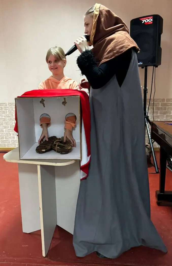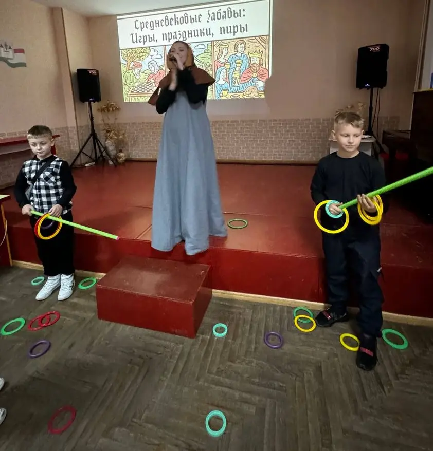 Но настоящим сердцем мероприятия стала интерактивная игровая программа. В гости к ребятам из далекого XIV века пожаловала дочь борисовского гончара Агнешка. В своем аутентичном наряде она стала проводником в мир средневековых развлечений. Участники разделились на две команды и с азартом включились в состязания. Их ждала целая вереница испытаний: викторина «Праздники наших предков», конкурсы «Рисунок фантастического зверя», «Отгадай на ощупь», «Кольцеброс», ребусы-загадки, динамичная игра «Капитошка».