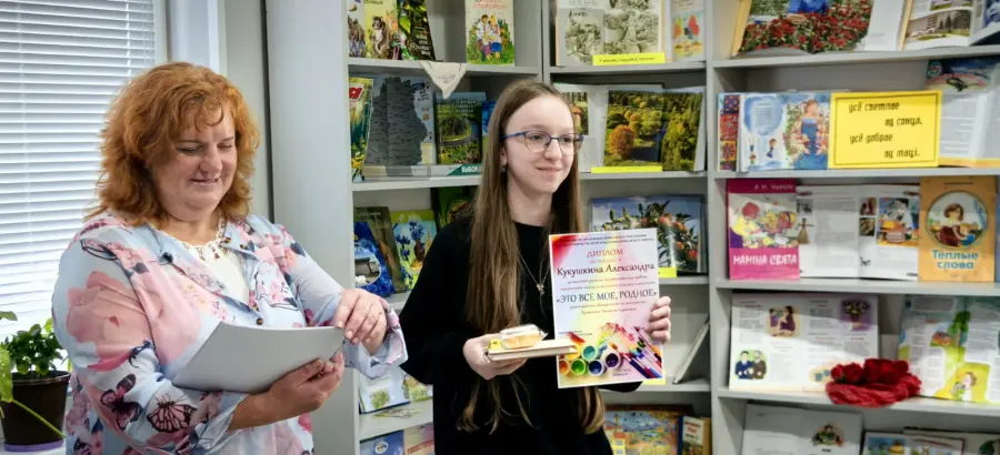 11 октября в городской библиотеке №6 царила особая, праздничная атмосфера. Здесь состоялось торжественное открытие выставки творческих работ учащихся объединения по интересам «Светлячки» народной студии изобразительного искусства «Каляровыя знічкі». Экспозиция получила теплое название – «Это все мое, родное».
